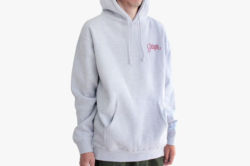 NYC ローカルブランド、Alltimers。裏起毛のフーデッドパーカー。写真は174cmの男性がMサイズを着用しています。