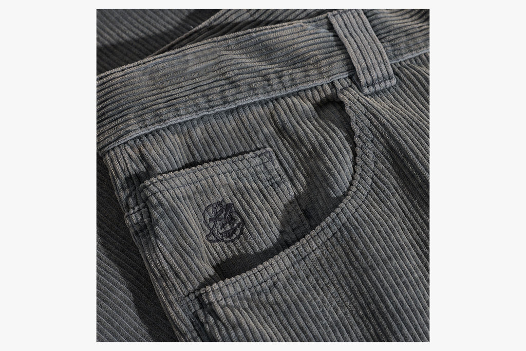北欧を代表するスケートブランド、Polar Skate Co. のアパレルライン。Big Boy よりもややレギュラーフィットよりのセミバギーフィット '93! PANTS の中太畝コーデュロイバージョン。ローウェスト&ストレートレグ。