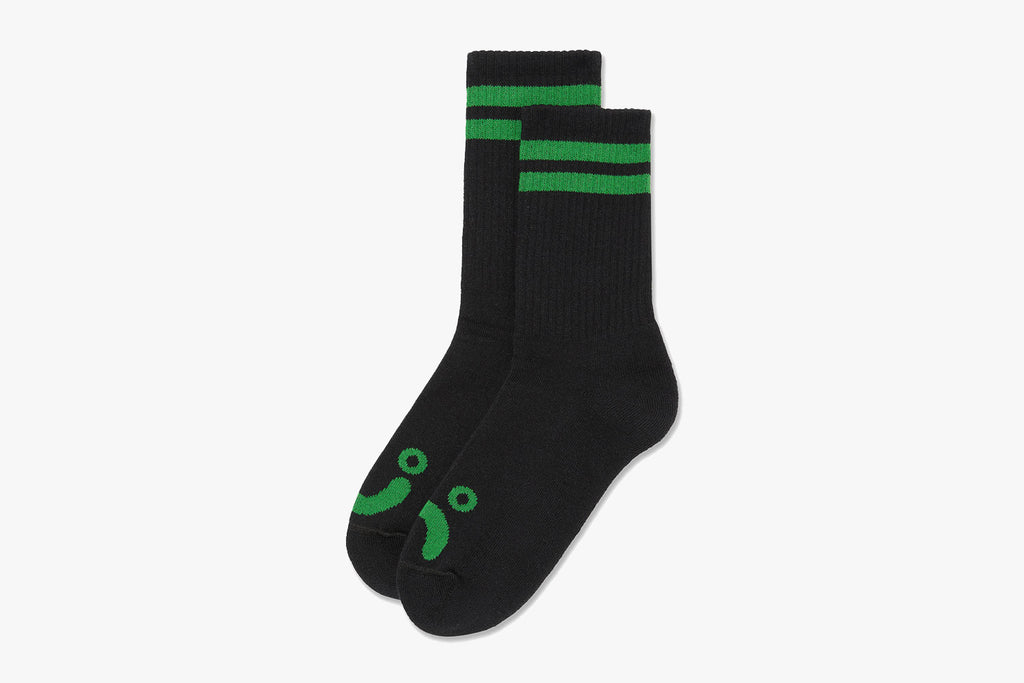 北欧を代表するスケートブランド、Polar Skate Co. のアパレルライン。ハッピーフェイスとサッドフェイスが左右の甲にプリントされたコットンソックス。
