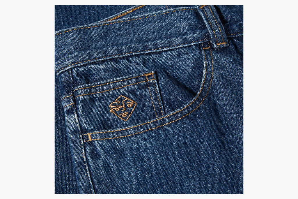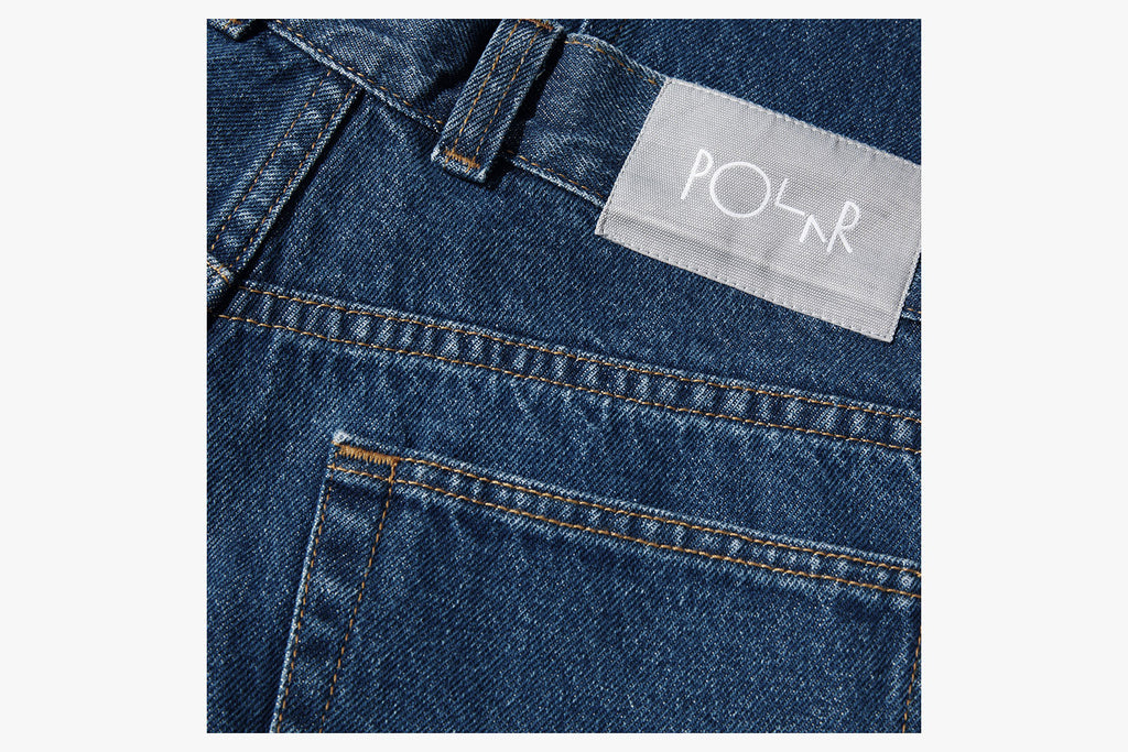 北欧を代表するスケートブランド、Polar Skate Co. のアパレルライン。ハイウエスト、ストレートレグ、レギュラーフィット仕様のデニム。