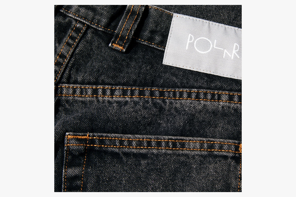 北欧を代表するスケートブランド、Polar Skate Co. のアパレルライン。ハイウエスト、ストレートレグ、レギュラーフィット仕様のデニム。