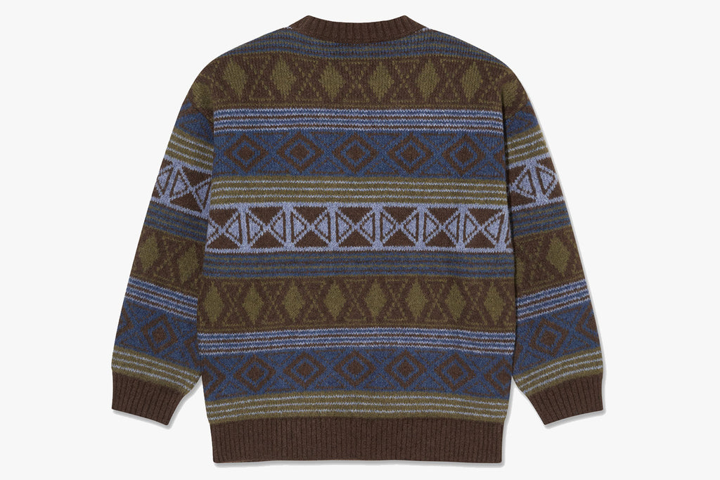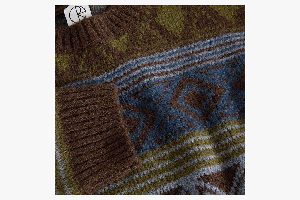 北欧を代表するスケートブランド、Polar Skate Co. のアパレルライン。厚手のたっぷりしたジャカードニットセーター。アクリル、ポリアミド、ポリエステル、ウール、ヴィスコース混紡で肌触り抜群。ドロップショルダー。ショート&ワイドなオーバーサイズフィット。