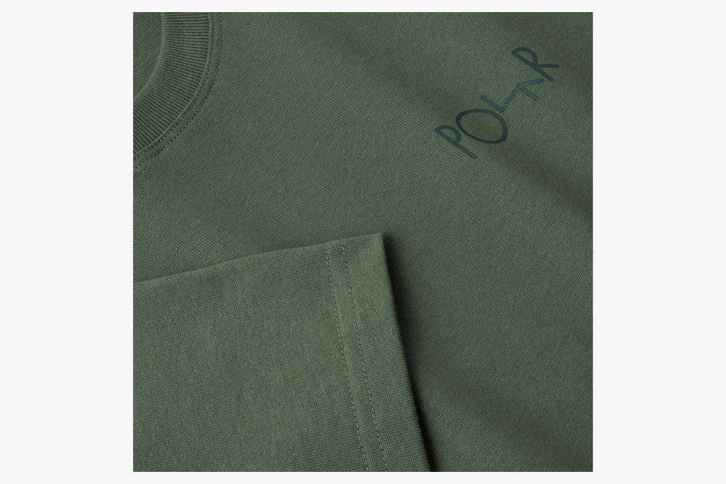 北欧を代表するスケートブランド、Polar Skate Co. のアパレルライン。7オンスコットン100%のショートスリーブTシャツ。写真は176cmの男性がMサイズを着用しています。