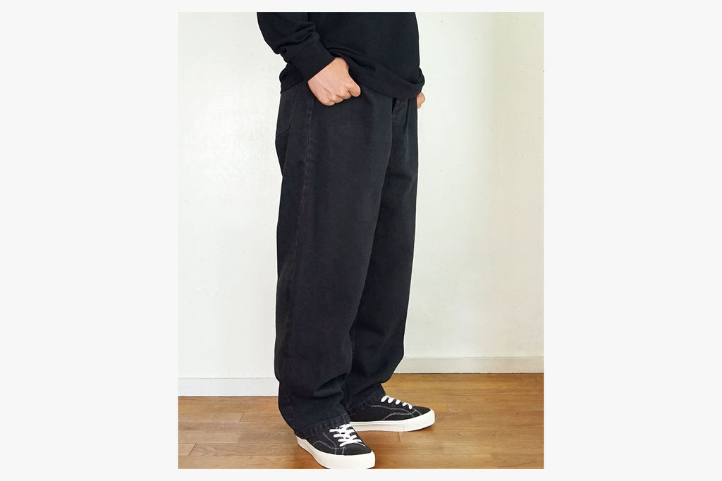 北欧を代表するスケートブランド、Polar Skate Co. のアパレルライン。スーパーバギーフィットを採用した、その名も Big Boy Pants。ハイウェスト&テーパードレグ。ストーンウオッシュ加工。写真は176cmの男性がSサイズを着用しています。