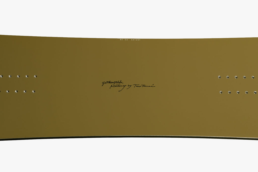 1度目にしたなら、深く印象に残ってしまう個性的なアウトライン。ビッグスクエアーノーズにハーフムーンテール。インデペンデントシリーズの中の TT-modelの様な存在のマンタレイ。312mmの最大幅、258mmのウエストと、1540mmのレングス。ボトム形状は勿論、斜面との抵抗が極端に少ない ロッカーとキャンバーシステム。面で捉えている時はキャンバーを足裏で感じながら、いざ3次元地形に入り込むと水を得た魚の様にルースな動きを見せる。ノーズをパウダーに沈ませ、全ての面を使ってパウダーの中からオーリーをかます。サイドにスライドしながらテールをかませノーズを フォールラインに送り込む。リップで足首を伸ばしながらグライド。サイドカーブの強さと相まって、絶対スピードより体感スピードにチューニングされ、 どの方向にも自由自在な挙動を見せる。スケーター曰く「ハーフムーンテールがリップでよじれる時、インディトラックの軋みが聞こえる」と。サーファーが言う「まるでツインかクワトロフィンのルースなスライド感覚」。タイトなツリーラン、ゲレンデ脇のピステンバンク、どんな小さなセクションも見逃さないマンタレイ。一度乗ったら病み付き間違いない!